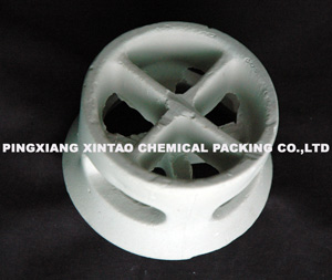 这种填料吸收了短拉西环的特点,也改变了填料的环高与直径相等的习惯 ,降低了环的高度,减薄了材质的厚度,并在环的侧端增加了翻边。 由于阶梯环填料的侧端增加了翻边,不但可以增加填料环的机械强度,而且由于破坏了填料结构的对称性,因而增加了填料投放时的定向几率。又由于翻边的影响,使得填料在堆积时填料环隙之间的接触由此线性接触为主变为以点接触为主。这样,不但增加了填料颗粒之间的空隙,减少了气体穿过填料层的阻力,而且这些接触点还可以为液体沿填料表面流动的汇聚分散点,从而促进了液膜的表面更新,有利于填料传质效率的提高。因此,阶梯环填料的性能较鲍尔环又有了进一步的提高。 |