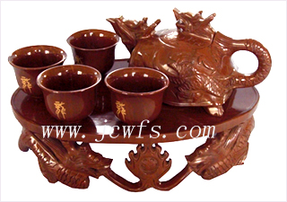 中国木鱼石茶具的缘起:乾隆帝下江南时途经山东,正逢中秋佳节,地方官员得知乾隆酷爱收藏各种名贵茶具,便向乾隆进贡木鱼石茶具壹套共六件,乾隆见这套茶具外观温润圆滑,沏茶后茶香四溢,口感甘甜,赞叹不已,欣然提笔为这套茶具题写“清幽”二字,命内务府造办处镌刻于壶身之上,回到京城后时时拿出把玩,并经常在各军机大臣面前炫耀。乾隆去世后,这套茶具连同其他乾隆喜爱的珍宝被一并收藏于故宫乾清宫。建国以来,这套茶具被列为国家一级文物,现藏于故宫博物院,从此为世人所罕见。全手工精品木鱼石茶具集保健功能,养生功能,休闲功能,佳节佳品家藏功能与一身,是高朋满座收藏之极品。 A系列艺术盘或者提梁壶带茶海;B系为茶杯双竹节;C系列为不带提梁不带高茶海,做工稍复杂;D系列为不带茶海不带艺术盘。“神水”品牌木鱼石,通过多家国家相关技术部门鉴定,含有多种人体必需的微量元素和矿物质,长期使用可以起到调节新陈代谢,促进血液循环,保肝、健胃、抗衰老,防高血压,抗动脉硬化,降低胆固醇,快速补充人体矿物质和微量元素的神奇功效。“神水”品牌产品,选料上乘、雕工精细,造型美观、古朴典雅、栩栩如生,实为保健、观赏、收藏及高档的馈赠礼品。自1991年投放市场以来,深受消费者的赞誉与好评。曾荣获济南市消费者协会“消费者满意单位”、山东省旅游局“六真店”信誉单位、2005年和2006年的济南市旅游局“十佳旅游商品”、济南市旅游文化博览会旅游商品一等奖、山东省旅游局“泉城杯”第二届山东省旅游商品全新设计大赛“优秀奖”等荣誉称号。 |