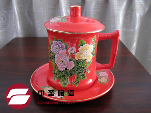 中国红牡丹盖杯