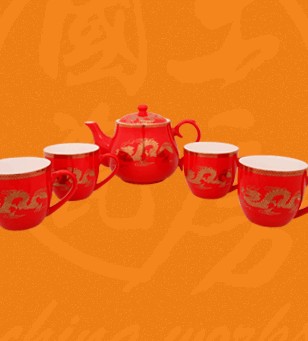 | 茶壶及茶杯都是用来喝茶器皿,此茶壶及茶杯主要以突出红色为渲染色,以描金龙为点缀,使其变得更加大气及高贵。龙是中华民族的一个象征,一个图章,一个徽记,弘扬一种纵横江天浩然宇内的民族大气。与人喝茶时,用此茶具,可以让人感觉耳目一新,气氛和谐,是馈赠客户及亲朋好友的一款时尚礼品! |