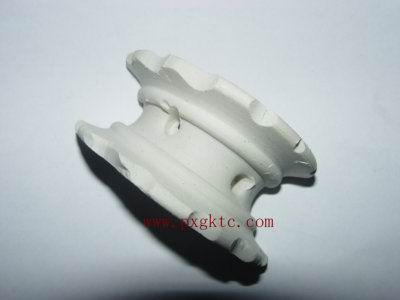 | 陶瓷异鞍环填料是在矩鞍环填料的基础上加以改进的新型填料,将矩鞍填料的平滑弧形侧面改为锯齿形或纹纹凸起的侧面。这样在填料床层内,增加了填料间接触的空隙,使之更有利于气体和液体在填料层中的流动和扩散,具有压降低,传质效率高等特点,广泛应用于硫酸生产的干燥塔和吸收塔中。 |