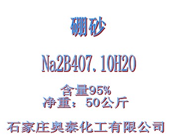 性质 无色半透明晶体或白色结晶粉末。无臭,味咸。比重1.73。320℃时失去全部结晶水。易溶于水、甘油中,微溶于酒精。水溶液呈弱碱性。硼砂在空气可缓慢风化。熔融时成无色玻璃状物质。硼砂有杀菌作用,口服对人有害。 CAS: 1303-96-4 分子式: Na2B4O7.10H2O 分子质量: 381.37 沸点: 1575℃ 熔点: 320℃ 中文名称:硼砂 英文名称: borax;sodiumtetraborate 用途 主要用于玻璃和搪瓷行业。在玻璃中,可增强紫外线的透射率,提高玻璃的透明度及耐热性能。在搪瓷制品中,可使瓷釉不易脱落而使其具有光泽。在特种光学玻璃、玻璃纤维、有色金属的焊接剂、珠宝的粘结剂、印染、洗涤(丝和毛织品等)、金的精制、化妆品、农药、肥料、硼砂皂、防腐剂、防冻剂和医学用消毒剂等方面也有广泛的应用。硼砂是制取含硼化合物的基本原料,几乎所有的含硼化物都可经硼砂来制得。它们在冶金、钢铁、机械、军工、刀具、造纸、电子管、化工及纺织等部门中都有着重要而广泛的用途。