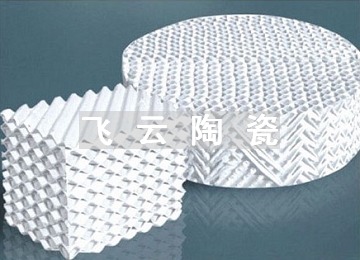 陶瓷波纹填料是一种新型规整填料,是由许多具有相同几何形状的单元体——波纹片相互平行、叠加组成,主要成分有黏土、石英、长石等。