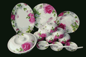 本产品种类繁多(花瓷 、白骨瓷、异型餐具 、彩瓷、白金叶、青花瓷等等),形状各异。