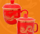 中国红瓷,红瓷 龙凤对杯gc022-02H