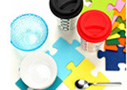垫子是餐厨里常用的隔热用品,但为了应对大大小小的锅具或餐具,主妇通常需要准备很多垫子,显得非常零碎。而这款垫子采用了拼图的形式,通过拼贴,主妇可以随意变换垫子的大小:单个使用或多个组合使用都相得益彰。这种模块式的结构也利于厨房收纳。这些垫子拥有多种缤纷色彩,是餐厨一道靓丽的风景线。
